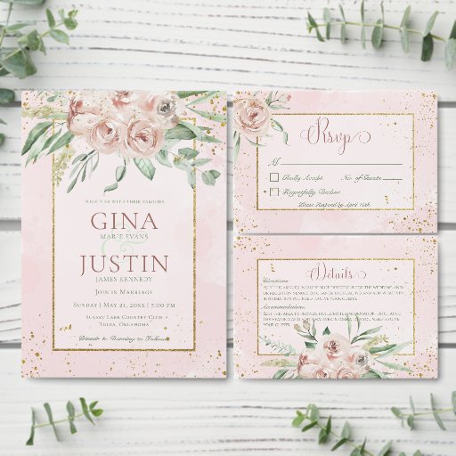 Blush Roses & Gold Accents Wedding Suite CardsDesigned by Kathe Santillo