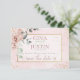 A soft blush watercolor background with a matching bouquet of blush roses at the top, all sprinkled with faux gold and surrounded by a faux gold glitter text frame. Simple and elegant, fresh and feminine. The back carries the blush watercolor and gold theme. This card is part of the Blush Roses & Gold Accents Wedding Suite of cards created by Simply Farmhouse Press.