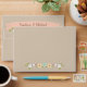 Add your names and address to this pretty custom rustic floral boho style envelope with a khaki sand colored background and printed blush peachy pink ribbon look banner with a white cherry blossom branch, sunflower, brown eyed susan and aqua teal blue wild rose tulip and posy laurel wreath design. These envelopes perfectly compliment a bohemian chic, country western, farm, farmhouse, barn, barnyard or outdoor garden themed special occasion like a wedding, bridal or couples shower, engagement party, rehearsal dinner or anniversary celebration. Artwork and design © Chrissy H. Studios, LLC. All rights reserved.
