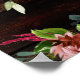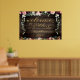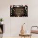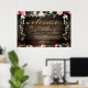 A 36 by 24 inch poster board with a rustic vintage reclaimed barn board wood background. A bough of deep burgundy and blush pink florals cascade amongst silver greenery garlands and romantic candle-lit floral bouquets bursting with peony flowers and sprays of floral artistry.