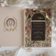 Invite your loved ones to celebrate your union with this exquisite Islamic Wedding Invitation, featuring a sophisticated Art Nouveau design. The invitation boasts a warm blush background with sage green and gold foil accents that exude elegance and charm. The front cover is graced with a stylized tree of life motif, symbolizing growth and unity, flanked by laurel leaves and monogrammed with the couple's initials 'A' and 'S' in a tasteful gold script. Turning to the back, your guests will be greeted by a beautifully detailed frame with lush florals in shades of blush, sage, and cream, elegantly wrapping the essential details of your special day. The intricate gold detailing and traditional Arabic calligraphy merge to create a seamless blend of cultural heritage and classic beauty, perfect for a wedding that celebrates love, tradition, and artistry.