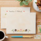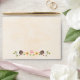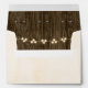These envelopes and stickers are part of a fall floral rustic string of lights wedding invitation set in blush, coral, green, brown, white, yellow and brown hues. An autumnal laurel wreath composed of acorns, berries, sunflowers, tulip rose and white blossoms sit on a leafy branch on a antique cream parchment look background. The couple's name is flanked by two sweet hearts. Perfect for an outdoor fall, night time, country, farmhouse, barnyard or rural chic themed wedding, anniversary party, engagement dinner or bridal and couples shower. A surprise, beautiful wood look background reminiscent of a wooden fence and or barrel with nail head trim and charming twinkle and fairy lights with a bokeh effect look bright, sweet, warm and inviting on the inside of the envelope. Artwork © Chrissy H. Studios, LLC. All rights reserved.