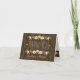 This wedding thank you note card is part of a fall floral rustic string of lights wedding invitation set in blush, coral, green, brown, white, yellow and brown hues with a beautiful wood look background reminiscent of a wooden fence and or barrel. An autumnal laurel wreath composed of acorns, berries, sunflowers, tulip rose and white blossoms sit on a leafy branch. Perfect for an outdoor fall, night time, country, farmhouse, barnyard or rural chic themed wedding or couples and bridal shower. The charming twinkle and fairy lights with a bokeh effect look bright, warm and inviting. An antique look parchment design inside. Artwork © Chrissy H. Studios, LLC. All rights reserved.