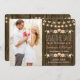 Add your favorite engagement photo or picture to this rustic string of lights save the date card that is part of a fall floral rustic string of lights wedding invitation set in blush, coral, green, brown, white, yellow and brown hues with a beautiful wood look background reminiscent of a wooden fence and or barrel. An autumnal laurel wreath composed of acorns, berries, sunflowers, tulip rose and white blossoms sit on a leafy branch. The words Save the Date is flanked by two coral hearts. Perfect accompaniment for an outdoor fall, country, farmhouse, barnyard or rural chic themed wedding, bridal shower, anniversary party or couples shower. The back can be customized with the happy couple's proposal story or special message for their guests. The charming twinkle and fairy lights with a bokeh effect look bright, warm and inviting. Artwork © Chrissy H. Studios, LLC. All rights reserved.