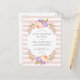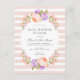 Whether you can't gather for a party due to coronavirus social distancing guidelines, or long distance family and friends are just too far away, this beautiful Baby Shower by Mail invitation will allow loved ones to celebrate your new baby from anywhere. This pretty botanical design features a watercolor frame of peach and lavender flowers on a blush striped background. Use the design tools to customize the text, edit the fonts and colors or add your own photos to create an elegant spring floral baby shower invitation.