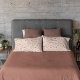 This is an outstanding easy-care pillow case, well sewn, and the microfiber fabric is marvelous. I made this pair as part of a Farm House Chic Collection ensemble. In my photos the cases have been washed and slept on a week. They look great. The wrinkles smooth right out in the morning. This fabric, though a polyester, does not take up color the same as the polyester cushions. I will be ordering more pillowcases in other colors and their intended pillow mates to see how the color variations between fabric type best go together in various ensembles. I cannot fault this printing- clearly it is a fine reproduction, but the color is quite different than the image, whereas the complement throw pillow using a pattern variation of the same image color matches the image. Fortunately, since I planned an ensemble with many shades of greens in the blanket leaves, various items in the group harmonize.
