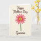 This greeting card features a single large flower centered on a soft cream background, with plenty of open space that makes the design feel calm and close, like a quiet moment shared between friends ❤️. The petals are painted in rosy pinks that shift from pale blush to deeper red accents, giving the bloom a gentle, affectionate look. A sunny yellow center with a small green dot draws your eye inward, like a warm glance held just a second longer. Subtle speckling and soft, watercolor-like texture on the petals add depth without feeling busy, while thin red lines radiate outward to shape the flower. Above the flower, a short line of text sits near the top in a flowing brown style, and a second line appears below the stem in the same brown tone. Soft, diffused lighting creates faint gradients across the petals and stem, bringing a springtime feel with a touch of 🌼. The stem is a muted green, and the lettering reads clearly against the cream backdrop with the flower positioned neatly in the middle.