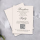 This blue wedding RSVP response card features classic typography paired with an elegant calligraphy script for a timeless, minimalist design. Created for wedding reception stationery, this simple and modern response card includes a scannable QR code that links directly to your wedding website, allowing guests to reply with ease. A perfect choice for couples who love clean lines, understated elegance, and a streamlined RSVP experience.