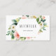 Elegant business card features painted watercolor flowers in blush pink, white, and green foliage with a Hexagon frame. For more advanced customization of this design, Please click the "Customize further" link.