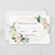 Blush White Bloom Gold Frame Floral Wedding RSVP Card