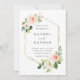 Plain white envelopes are included with paper invitations and will come to fit the invitation size you select. If you don’t need the envelopes, you may choose to not receive them by selecting the dropdown below "Envelopes" and choosing "None." If you’d like to have a design on your envelopes, you can browse all of these available envelopes to find the design that complements your Blush White Bloom Gold Frame Wedding Invitation.