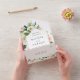 This all in one wedding invitation card features a hexagon shape surrounded by painted watercolor flowers in blush pink, white and green foliage, a wedding invite with an rsvp postcard for your guests to cut off and send back. For more advanced customization of this design, please click the "customize further" link. Matching items are also available.
