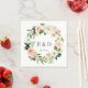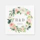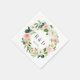 Elegant Wedding Personalized Paper Napkin featuring a wreath of watercolor flowers in blush pink and white with green foliage and leaves. For more advanced customization of this design, Please click the "Customize" button. Matching items are also available.