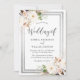 Blush White Flowers Silver Border Elegant Wedding Invitation