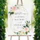 Elegant Wedding Welcome Sign featuring painted watercolor flowers in blush pink, white and green foliage with a geometric gold frame. For more advanced customization of this design, please click the "Customize" button. Matching items are also available.