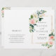 Blush Bloom Wedding Program features painted watercolor flowers in blush pink, white, and green foliage with a gold rectangular frame.
