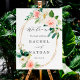 Elegant Wedding Welcome Sign featuring painted watercolor flowers in blush pink, white and green foliage with an oval gold frame. For more advanced customization of this design, please click the "Customize" button. Matching items are also available.