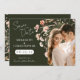 Announce your big day with this romantic Save the Date card featuring blush watercolor wildflowers, elegant modern fonts, and space for your favorite engagement photo. The deep olive green backdrop adds a sophisticated touch, while the whimsical florals bring in a soft, garden vibe — perfect for rustic, outdoor, or fall weddings.. Elegant Green Blush Florals Wedding Photo Save the Date with couple Photo and dark green background. Sweet elegant blush pink and beige watercolor wild flowers, botanicals, and couple's photo. These blush watercolor florals set against a dark green background are perfect for whimsical wildflower weddings.