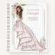 Bridal shower guest book features an illustrated bride in a glitter gown. Multiple options for skin tone, and hairstyles. Coordinates with pink roses bride invitation.