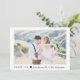 These simple and elegant wedding thank you cards feature your favorite personal wedding photo with a thin white geometric frame, along with your names in modern black script typography and a tiny heart. The back of the card has a soft blush pink textured look.