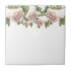 A beautiful vintage design of romantic blushing ivory peach roses framed in green leaves.