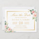 Blushing Pink Floral Gold Frame Wedding Save The Date