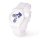I only have one complaint. I ordered the watch with clear case and strap, and what was sent was white case and strap. I'm going to keep it because 1) it looks very nice in white, and 2) it would take too long to get a replacement made and sent in time for my occasion. Aside from the mix up with the color, the watch does look very good in white. The purple dial is actually sparkly which did not show in the online images. That was a nice surprise. If you like Swatch watches this is very similar to those. It's 33.6mm in diameter, 10.5mm thick, and 40.6mm lug to lug. Stainless steel case back says 3ATM/30m WR, so no swimming or showering or submerging this one. If you like Woodstock, this is a great choice.