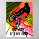 The sports action and energy of BMX athletes are captured in silhouettes of action figures demonstrating extreme tricks and stunts on their bikes. Digital paintings and illustrations of these teens and young men include backgrounds of bright, vivid colors and splashes and bursts of light to highlight the action. They also show off in grungy and edgy street scenes where kids earn their street creds showing off their bicycle skills.