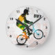 BMX Rider in Abstract Paint Splatters SQ WITH TEXT Round Clock