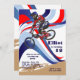 An invitation full of BMX fun and action with a patriotic red, white and blue swirl background. Perfect for your extreme party celebration. Design by Vecteezy Team USA Patriotic BMX. The card is easy to customize with your wording, font, font color, paper shape options and choice of six paper types.