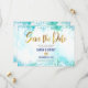 B'nai Mitzvah Turquoise Watercolor Gold Script Save The Date