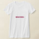 The material is a great quality that is hard to find with most tee shirts. Fabric was not see-through or thin at all, but was also very soft and comfortable. The shirt description states that it runs a little small, so I sized up one size for a perfect fit! I would definitely buy this type of tee shirt again because I love the fit and high quality fabric that I cannot find anywhere else. The printing was perfect and just as pictured. Loved the cute quote and really enjoy the tee in both the quality and design. I love quirky typography designs and funny quotes and I am extremely pleased with the overall quality and value I get at Zazzle!