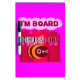 This artwork features a stylized scene with a cartoonish bee prominently displayed in the foreground. Behind the bee, red vertical shapes resemble a wooden fence, creating an enclosed yet whimsical atmosphere. The phrases "I'M BOARD" and "I MISS YOU" are cleverly incorporated into the design, transforming a simple sentiment into a humorous and relatable message.