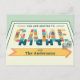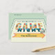 Game Night Invitation Postcard featuring a fun typography of "Game Night''. This designs include elements of blue, yellow, red and orange, a game board background, dice, game pieces, game cards, and elements inspired by board games. Products include a template for personal customization.