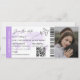 Modern minimalist monogram boarding pass wedding ticket with a simple white and brown background, a photo of the engaged couple, a plane with a loop trail, and an easily customizable save the date template. Don't forget to change the text on the back of the monogram.