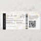 Modern minimalist monogram boarding pass wedding ticket with a simple white and brown background, a photo of the engaged couple, a plane with a loop trail, and a save the date template that is readily customized. Remember to update the text on the back of the monogram.