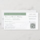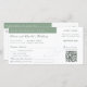 Elegant Boarding Pass Sage Qr Code Wedding Destination Holiday Card in sage color with RSVP and timeline on the back