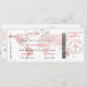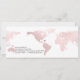 PixDezines boarding pass save the date for any destination wedding with blush pink world map and a tiny red heart to indicate your destination.