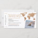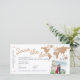 Boarding Pass Save the Date Card with an elegant faux copper rusty bronze foil world map, modern boho fonts, and 2 photos with abstract geometric borders around them. You can use this template to create your own unique travel theme destination wedding date announcement, leave the design as-is, or have some fun with DIY design using our layout.