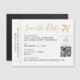 Guests will display these cute travel theme mini boarding pass magnets on their fridge the second they arrive as part of your fun destination wedding save the date set. With our romantic gold airplane heart design and fun ticket fonts creating the perfect combination of elegant, modern, retro, fun, and formal so they can coordinate with just about any other beach wedding or travel theme save the date card. These mini magnets are the size of a postcard and need an envelope to mail. Slip them in with a larger card, or hand them out to your bridal party and family for a unique wedding keepsake that will remind them of the trip they get to have while attending your wedding!