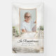 Remember the life of your loved one after their death with the charming Boardwalk to Beach Celebration of Life Funeral Banner. This seaside custom tribute memorial hanging vinyl sign features a digitally watercolor painted scenic coastal nature photograph of a rustic wooden boardwalk leading to a sandy beach and ocean with tall green grasses. Feel free to change the text and personalize it with a photograph of the deceased, name and dates.
