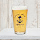 A chic modern nautical-themed beer glass for your boat's guest with a navy blue anchor. You can personalize the "Welcome Aboard" text and your boat's name and location in elegant navy blue typography.
