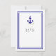 A modern sailing boat anchor in navy blue and white a contemporary modern R.S.V.P. wedding invite, to coordinate with your bridal wedding stationery essentials. This simple rsvp can easily be personalized with the date and other text to the templates to create your own unique professional luxury custom invitation for your special marriage occasions, events and celebrations. Visit the PERSONALIZED_ WEDDINGS STORE for matching coordinated wedding sets.