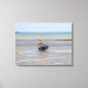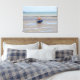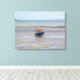 A beautiful view of a small blue boat at low tide printed on a canvas.