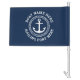 Car flag featuring a nautical anchor and your custom boat name and hailing port. Anchor, text and background colors can be changed with the design tool.