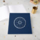 Guest book featuring a white, elegant ship's wheel and rope emblem with custom boat name and hailing port (or other custom text) on a dark blue background.