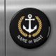 A Personalized round magnet with your boat name, family name or other desired text as needed. Featuring a custom designed nautical boat anchor, gold style laurel leaves and star emblem on black or easily adjust the primary color to match your current theme.
