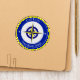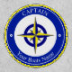 A blue and white and yellow nautical themed ships compass and boat name and captain text easily add your yachts name, adjust the curvature of the text if necessary.