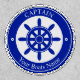A blue and white nautical themed ships wheel and boat name and captain text easily add your yachts name, adjust the curvature of the text if necessary.