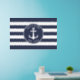 Personalize the nautical wall decal with your boat name and year. The Navy blue and white design features an anchor and rope circle illustration on a striped pattern. It is designed in 36x24 inches (36 in width and 24 in height), but if you need a square design or another size, you can customize it by choosing the size you prefer before ordering.